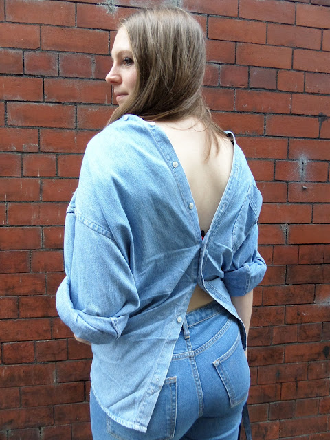 I say getting creative what I mean is putting on a shirt backwards, but hey I'm always trying to differentiate the way I style up my/the boyfriends wardrobe staples. This is definitely different but I have to say I love it!